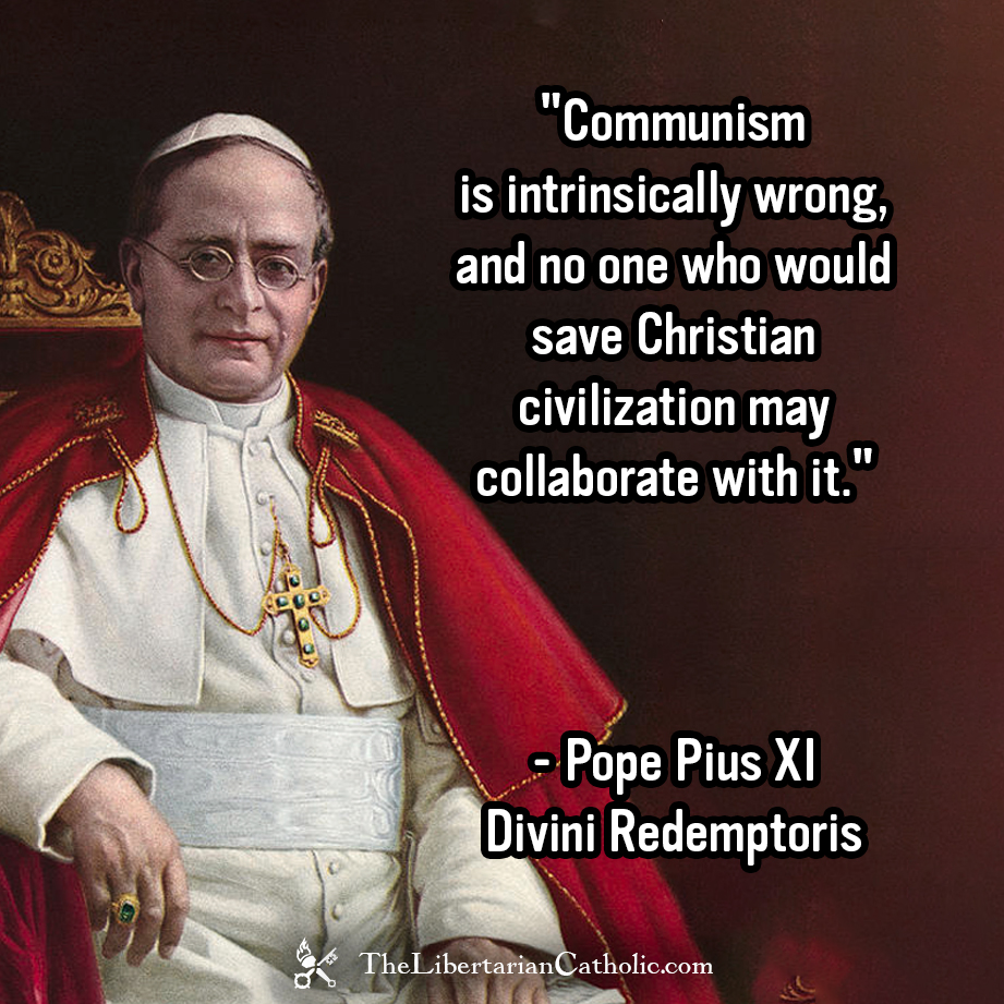 “Communism is intrinsically wrong, and no one who would save Christian civilization may collaborate with it.” – Pope Pius XI Divini Redemptoris , 19th of March, 1937.